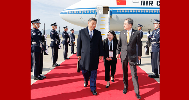 習近平抵達韓國出席亞太經合組織第三十二次領導人非正式會議並對韓國進行國事訪問