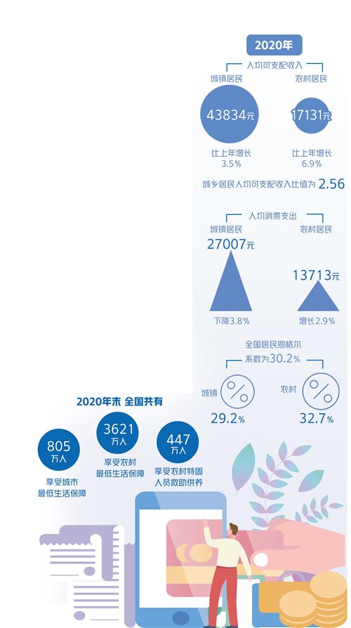 主要表現為:城鄉居民消費差距明顯,2020年,城鎮居民人均消費支出約為農村居民人均消費支出的1.97倍,農村居民耐用消費品普及率明顯低於城鎮居民﹔城鄉居民收入差距明顯,2020年,城鄉居民人均可支配收入比值為2.56﹔城鄉社會發展差距較大,盡管城鄉之間義務教育、居民養老和醫療保險制度基本統一,城鄉之間低保和特困救助等社會救助的差距也在日益縮小,但在社會保險等方面還存在明顯差距﹔城鄉土地權能尚不平等,隨著相關改革逐步深化,農民分享土地增值收益的途徑在逐步拓寬,但是,目前農村集體土地的權能依然較為受限。