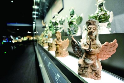 西夏陵博物館展出的迦陵頻伽。新華社發
