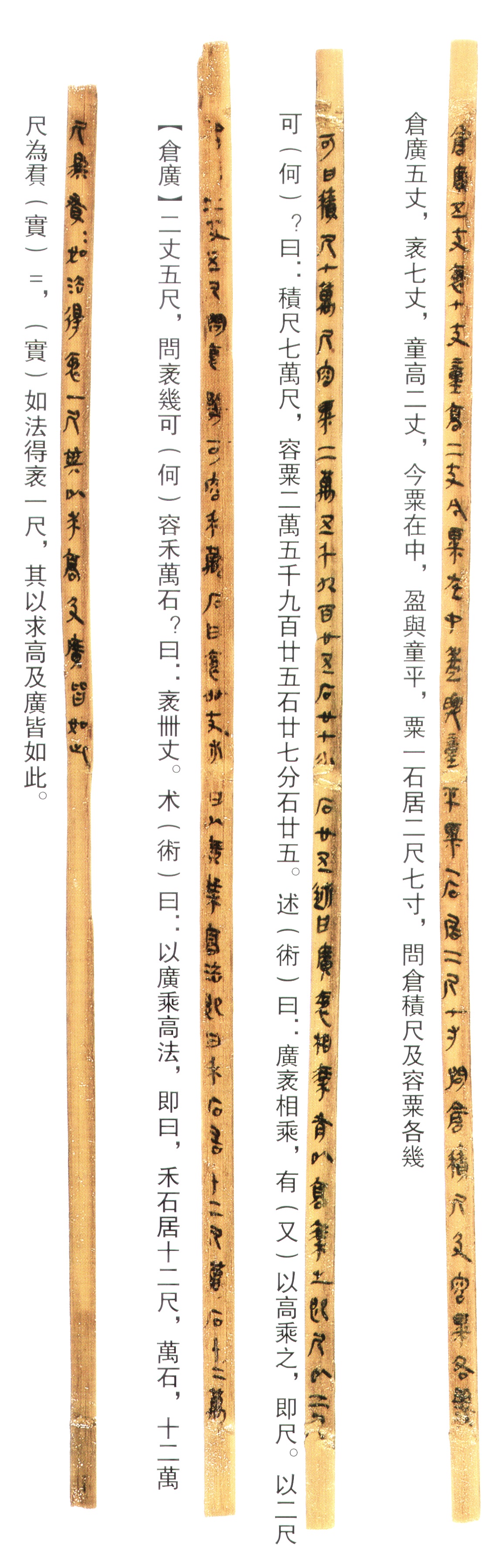 總而言之,通過對出土簡牘算書中有關倉儲活動的考察,可見算術已深度融入倉儲管理乃至國家治理各個環節,成為秦漢國家治理有效推進的重要支撐。這些沉睡於簡牘中的文字,不僅展現了我國古代卓越的數學成就,更為我們理解中華文明中算術思想的實際運用,提供了真切的歷史見証。