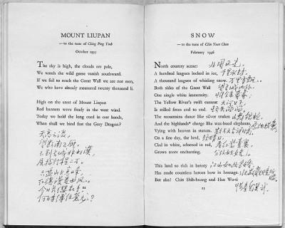仓孝和在一本英文版《毛泽东诗词》上手写中文原诗。作者供图