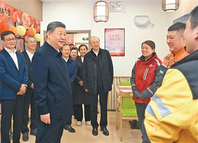 10日上午,习近平在西城区新街口街道父母食堂考察时,同在这里休息的快递小哥亲切交流。