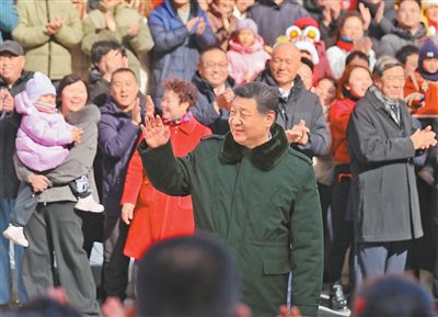 2月9日至10日,中共中央总书记、国家主席、中央军委主席习近平在北京考察并看望慰问基层干部群众。这是10日上午,习近平在东城区隆福寺街区考察时,向全国各族人民和香港同胞、澳门同胞、台湾同胞、海外侨胞致以美好的新春祝福。