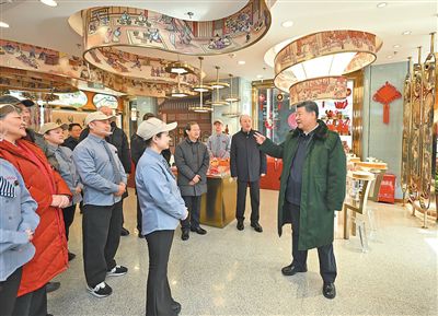 10日上午,习近平在东城区隆福寺街区的稻香村糕点店考察。