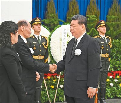 3月10日,宋平同志遗体在北京八宝山革命公墓火化。习近平、李强、赵乐际、王沪宁、蔡奇、丁薛祥、李希、韩正等前往八宝山送别,胡锦涛送花圈表示哀悼。这是习近平与宋平亲属握手,表示深切慰问。